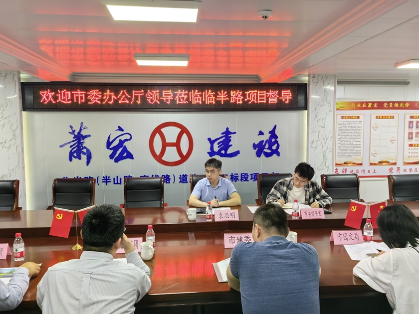 袁思明副主任一行踏勘了项目现场,对项目施工进度、现场管理、安全文明施工措施等方面进行实地调研。在随后召开的座谈会上,pg游戏试玩 傅翼部长围绕临半路项目整体建设情况及后续施工方案进行汇报,与会各部门针对亚运保通、景观绿化方案、建设时序等具体事项进行了探讨。