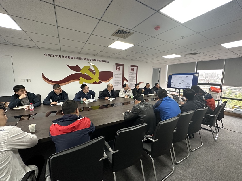 为进一步推进主题教育走深走实,落实调查研究有关部署,4月23日下午,pg游戏试玩 副总经理方晓赴环北天目指挥部检查指导数字化道路项目开展情况。环北天目指挥部、数智交通公司、地下管道公司、高信公司及项目设计、监理单位主要人员参加。