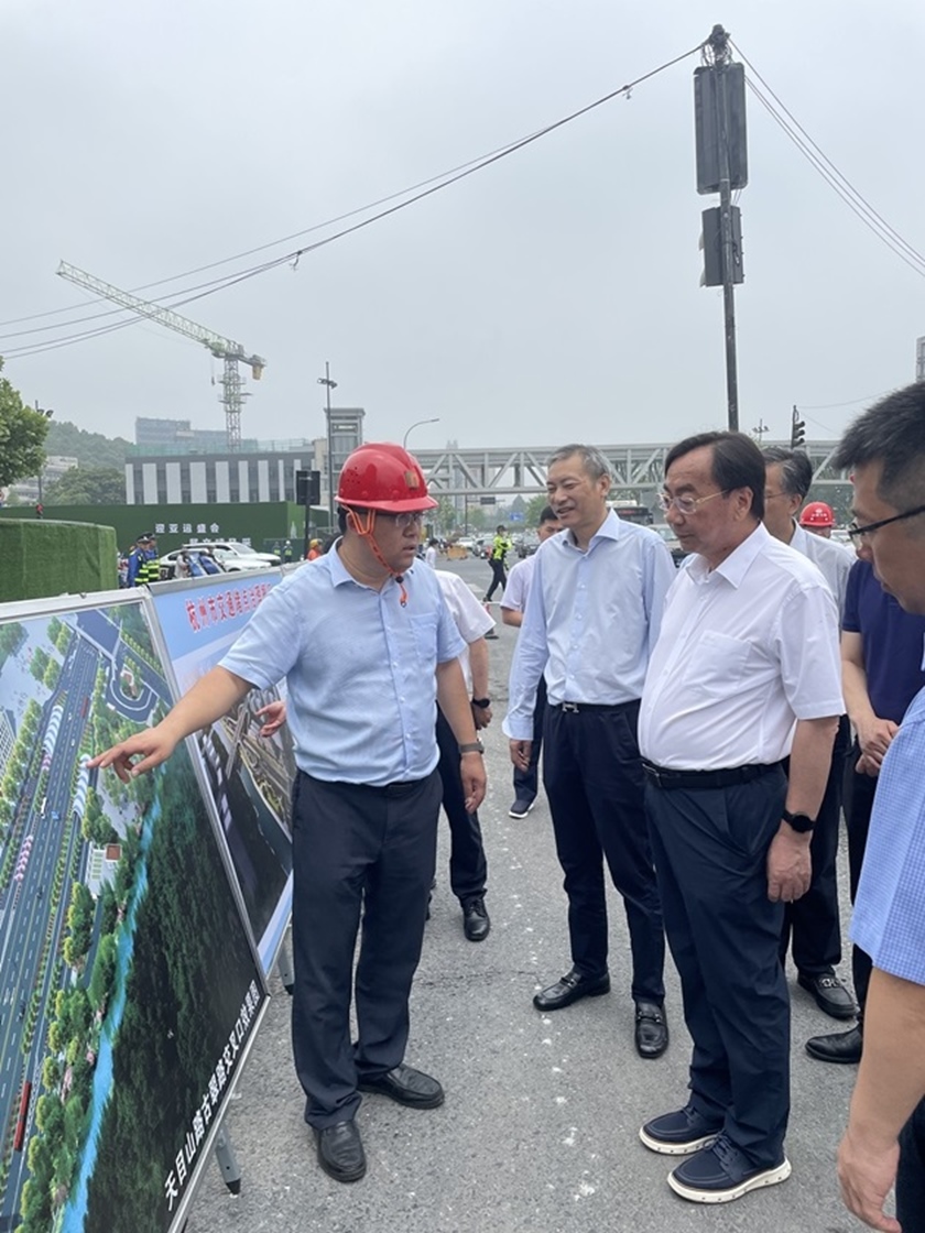 5月30日上午,杭州市政协主席马卫光携杭州市政府党组成员缪承潮、市政协副主席许明、市政协秘书长柴世民,市建委、市城管局、余杭区政府、杭州西站枢纽管委会、亚运市运保指挥部办公室、城市环境提升组等单位相关负责人赴环城北路-天目山路(中河立交-古翠路)提升改造工程现场调研道路恢复情况。