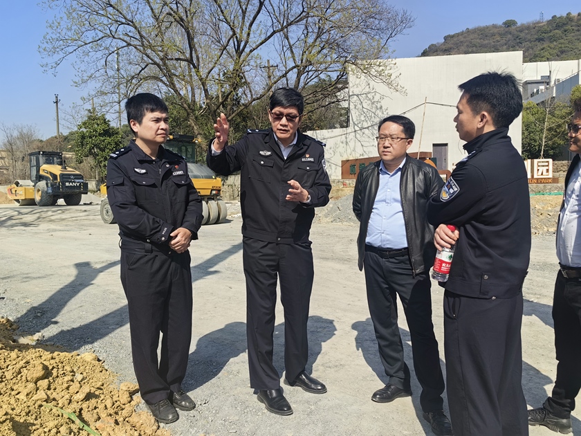 在项目现场,张剑大队长全面了解了项目概况、建设进度和下一步施工计划,对沿线交通组织情况进行检查,并与现场人员就清明节前后半山公墓区域交通保障方案细节进行探讨。针对后续工作,他要求:一是要进一步强化道路交通组织,减缓现状通行道路交通压力。二是做好沿线道口顺接,提升沿线单位、社区人员出行质量。三是提前谋划清明期间交通保障工作,优化交通保障方案,为扫墓人员提供便利。