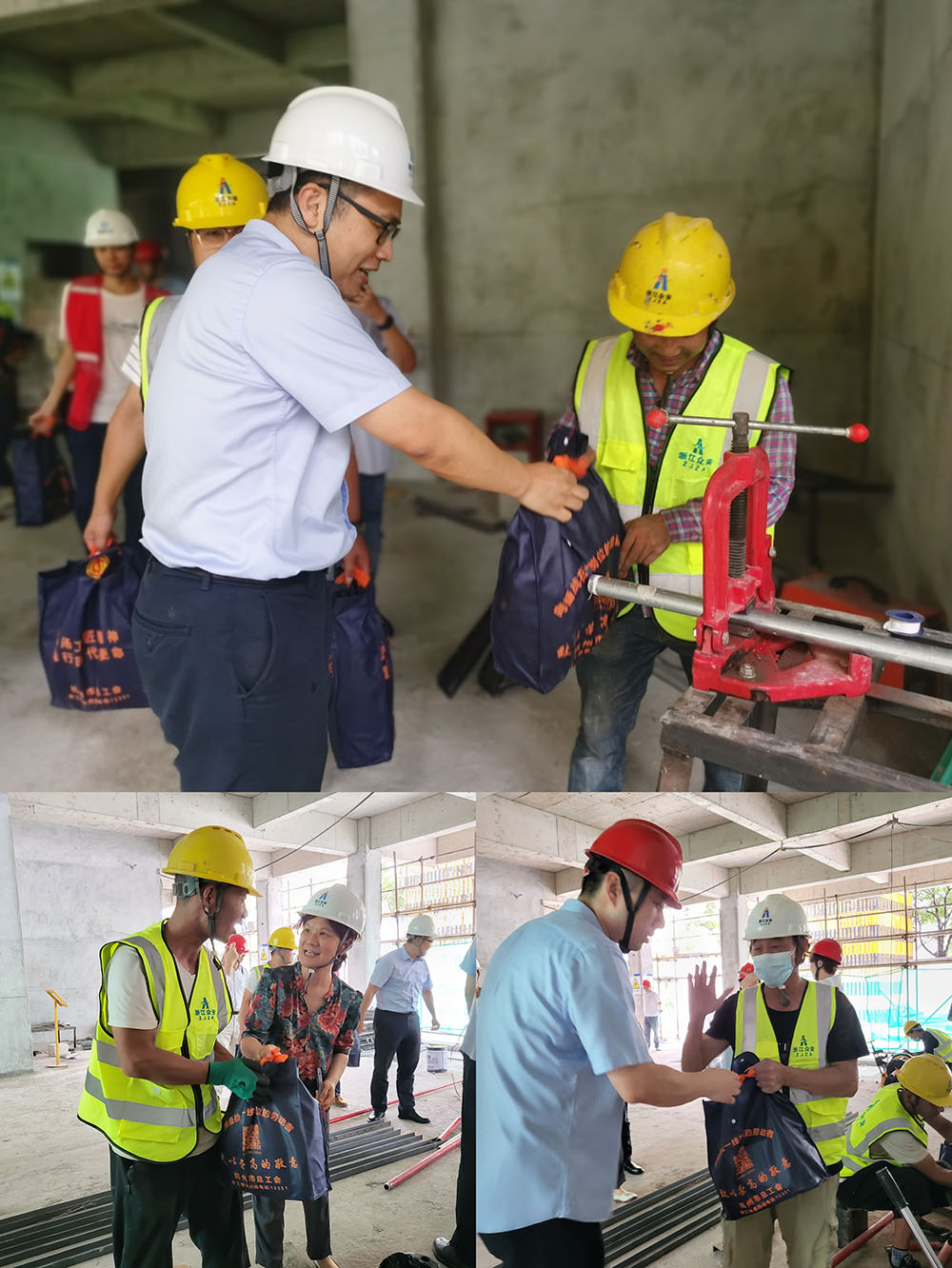 7月26日下午,市建设工会主任李中,副主任裘江宇,pg游戏试玩 党委委员、副总经理、工会主席杨捷携工会、团委相关人员一行,赴长睦指挥部工程一线,亲切慰问在高温酷暑下奋战一线的建设者们,同时关心关爱暑期来杭与父母团聚的“小候鸟”们。