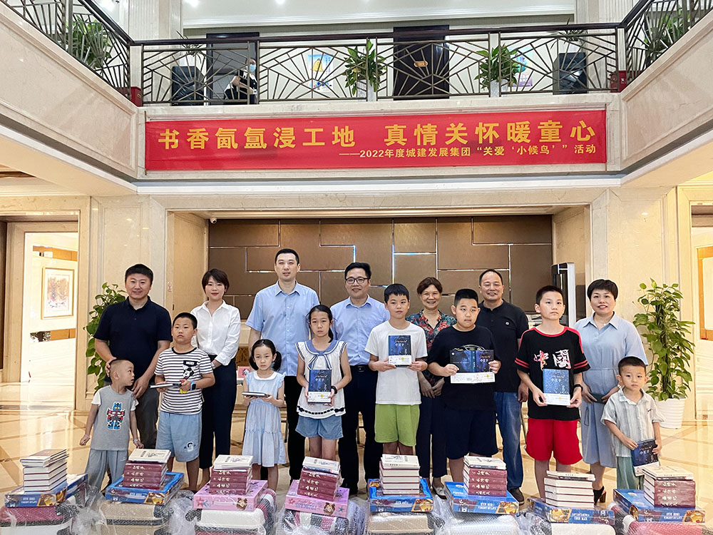 在长睦指挥部,pg游戏试玩 工会、团委开展了“书香氤氲浸工地、真情关怀暖童心”赠书活动。活动特邀李中主任、裘江宇副主任、杨捷副总经理在中外名著等赠籍的扉页上,为“小候鸟”们写下一句句真挚的寄语,鼓励“小候鸟”们多读书、读好书,在书香陪伴中茁壮成长。市建设工会、团委还准备了崭新的文具和旅行箱,一并送到了“小候鸟”们的手上。