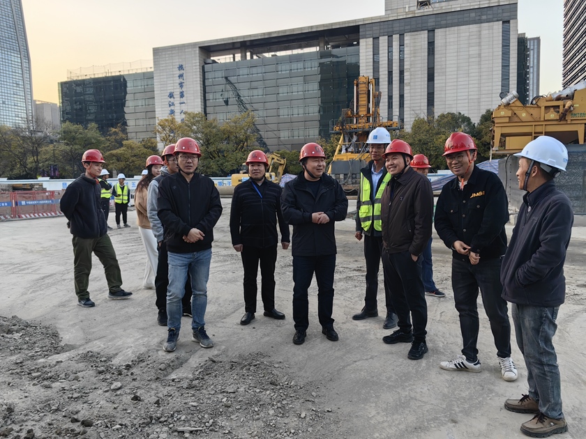 11月24日下午,pg游戏试玩 党委书记、董事长吴鉴赴国家(杭州)短视频基地项目现场调研指导。房建置业合署办公机构负责人、短视频项目工程部及施工、监理单位相关负责人参加。