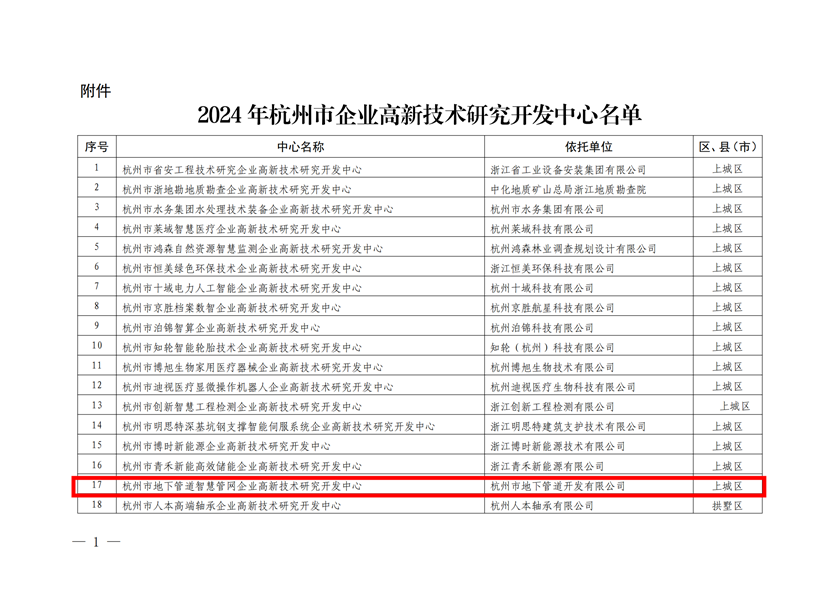 此次通过「杭州市pg游戏试玩高新技术研究开发中心」认定,是地下管道公司秉承创新驱动的发展理念,专注于智慧管网的创新研究,持续推进关键技术攻关的成果体现。
